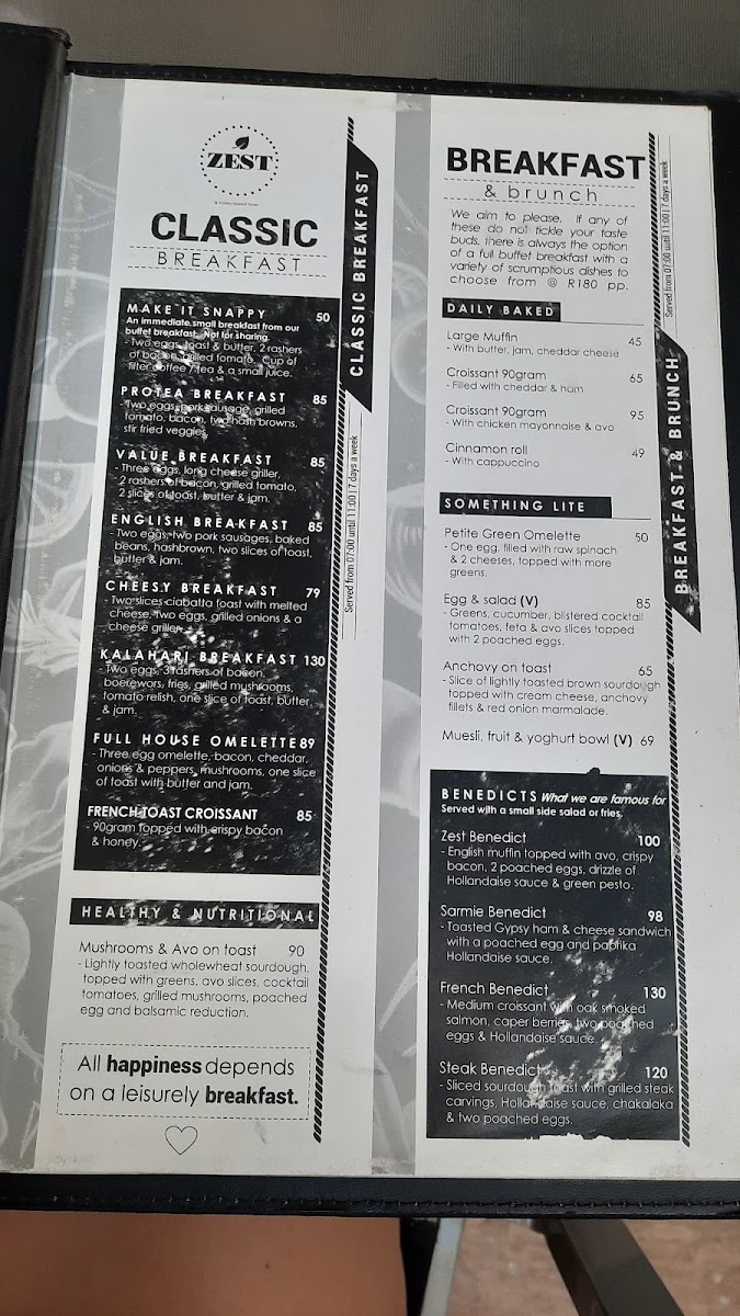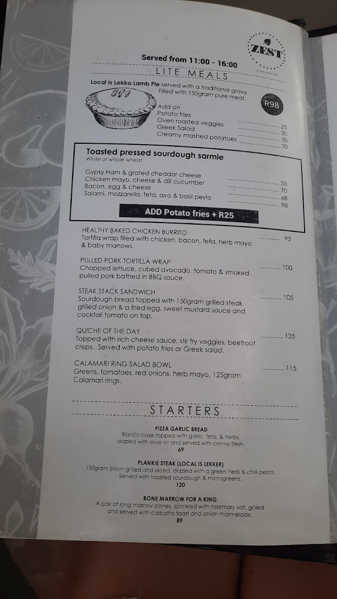 Café Zest Fine Dine in Upington stands out as a beacon of exceptional dining, blending warmth and finesse in every dish. This restaurant is renowned for its melt-in-your-mouth steaks—like their perfectly cooked rump, praised for tender juiciness and balanced flavors. The menu offers a diverse range of breakfast and lunch options, each plate beautifully presented and thoughtfully crafted to satisfy varied palates.